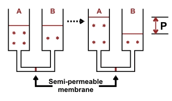 Osmosis was discovered by Nollet in 1748 with a container, filled to the brimwith alcohol and closed by a pig's bladder, which had stood for several hours in water (to protect the alcohol against entry of air). The bladder had admitted the water into the container, but only very little alcohol. As water and alcohol were being exchanged, that is, the container closed with the pig's bladder contained water and was below alcohol, the pig's bladder vaulted concavely into the water container. It had let water escape and allowed only a little alcohol to enter. His discovery of the osmosis of water through a bladder into alcohol was the starting-point of that branch of physics.